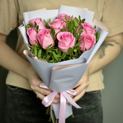 Купить букет из 9 розовых кенийских роз в Петрозаводске